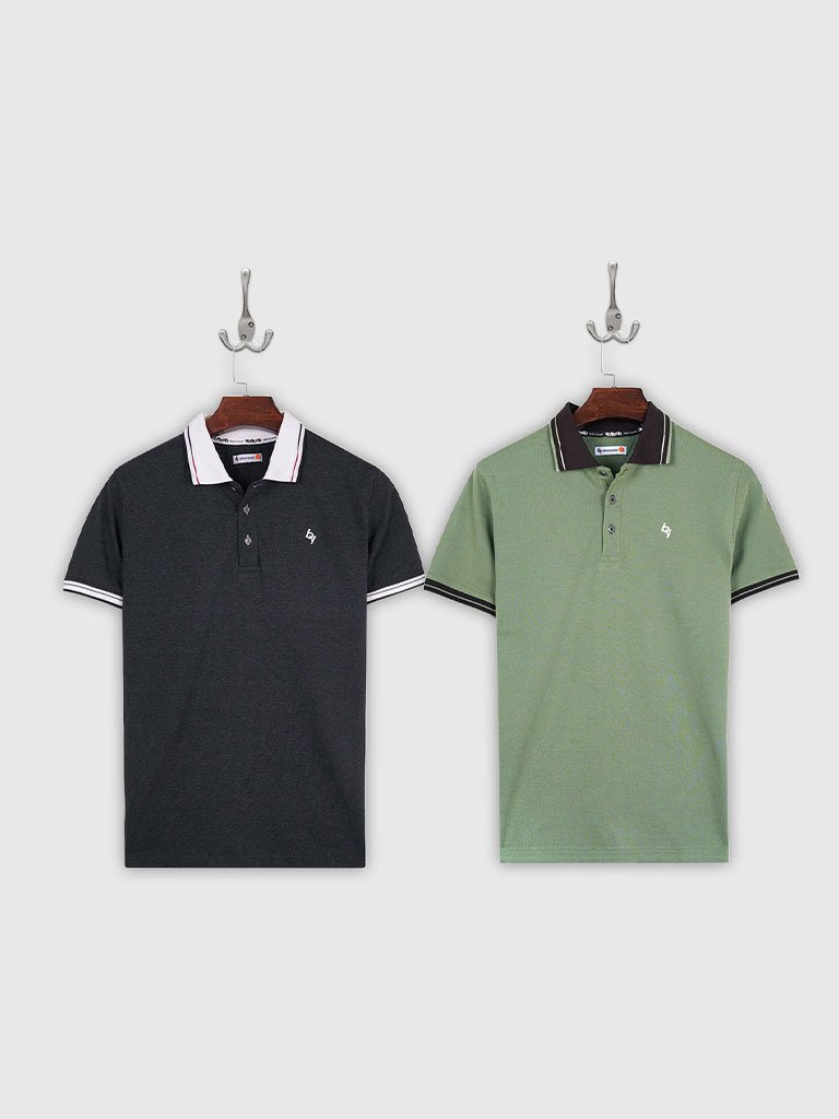 Olive + Charcoal Jacquard Polo Shirt Combo Set