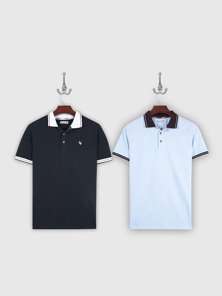 Charcoal + Sky Blue Jacquard Polo Shirt Combo Set