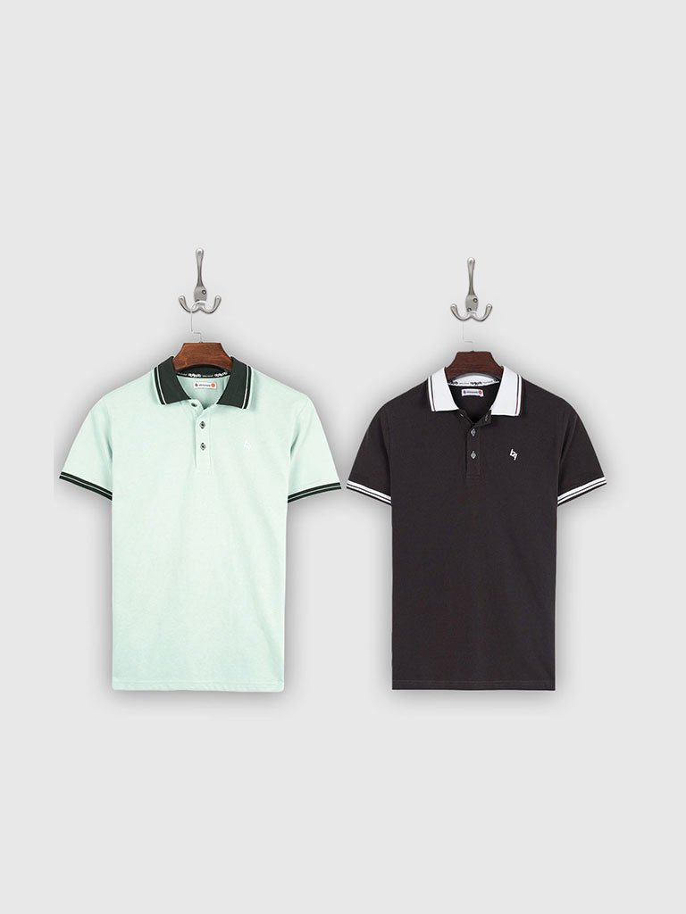 Sea Green + Coffee Jacquard Polo Shirt Combo Set