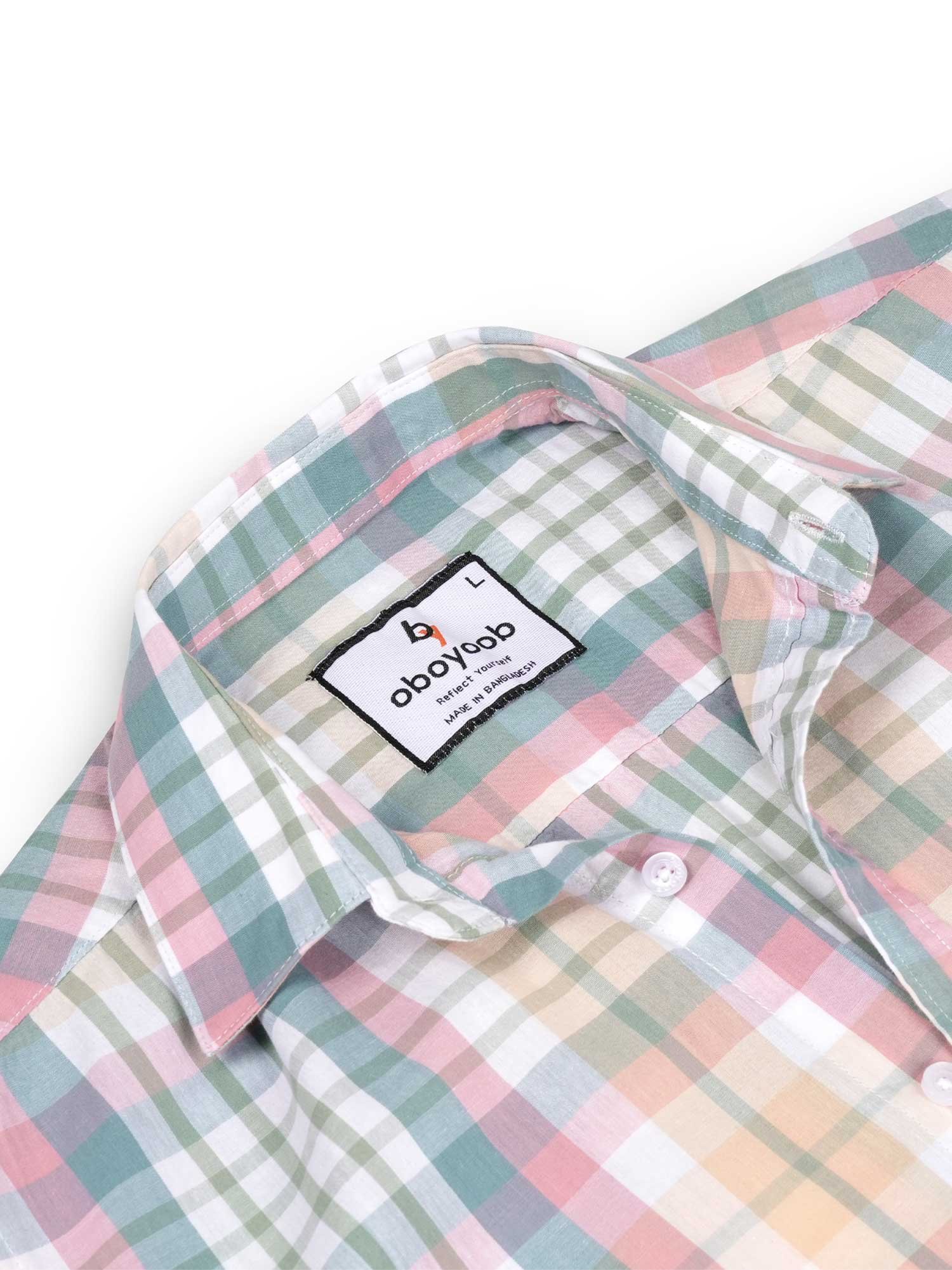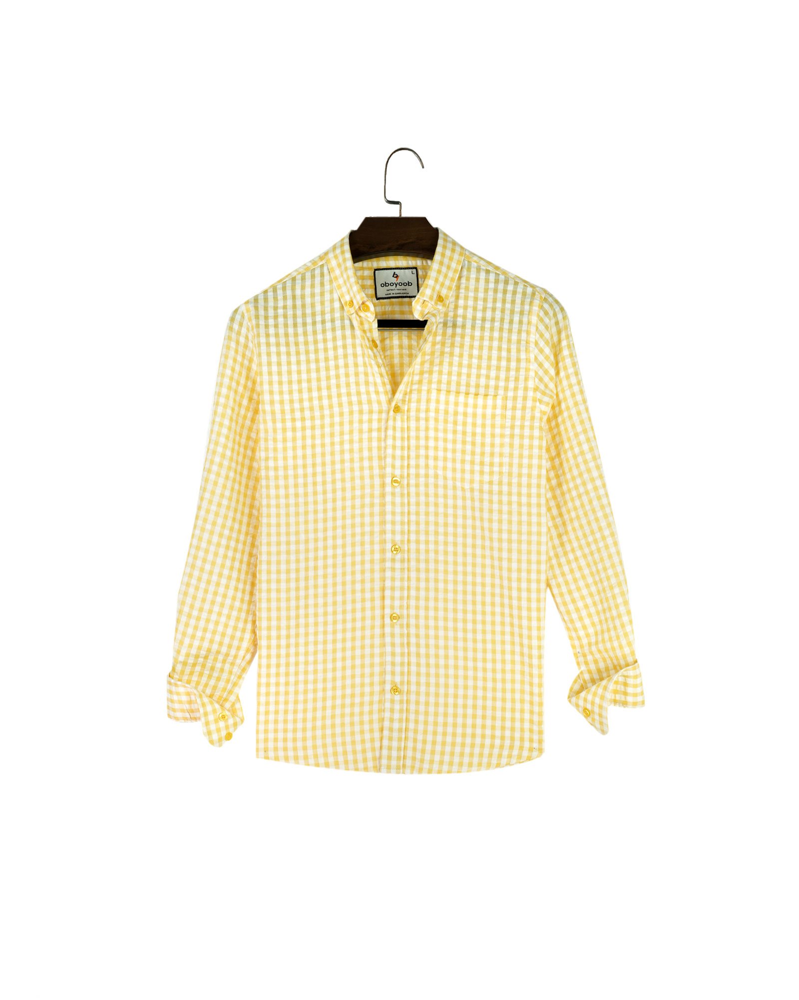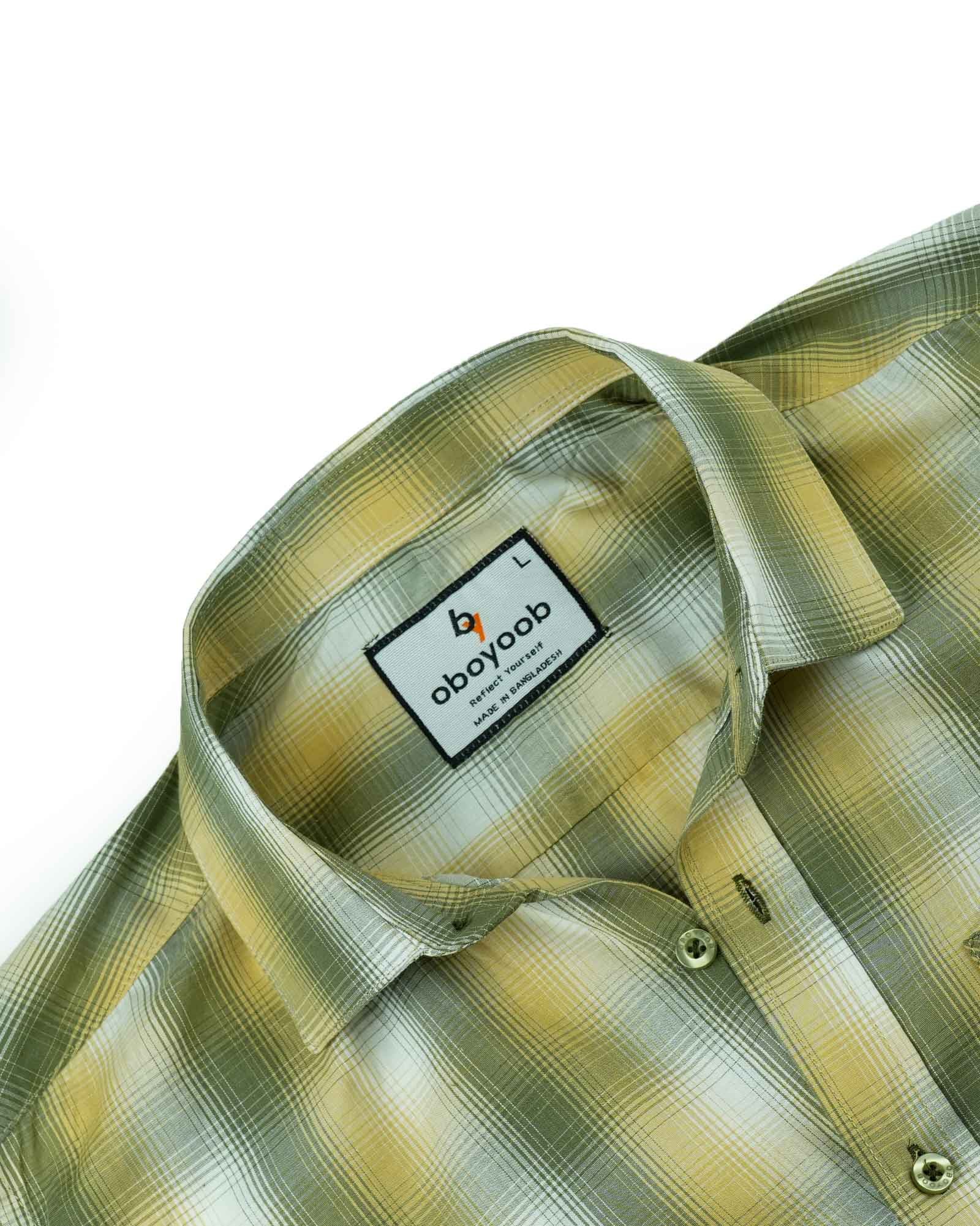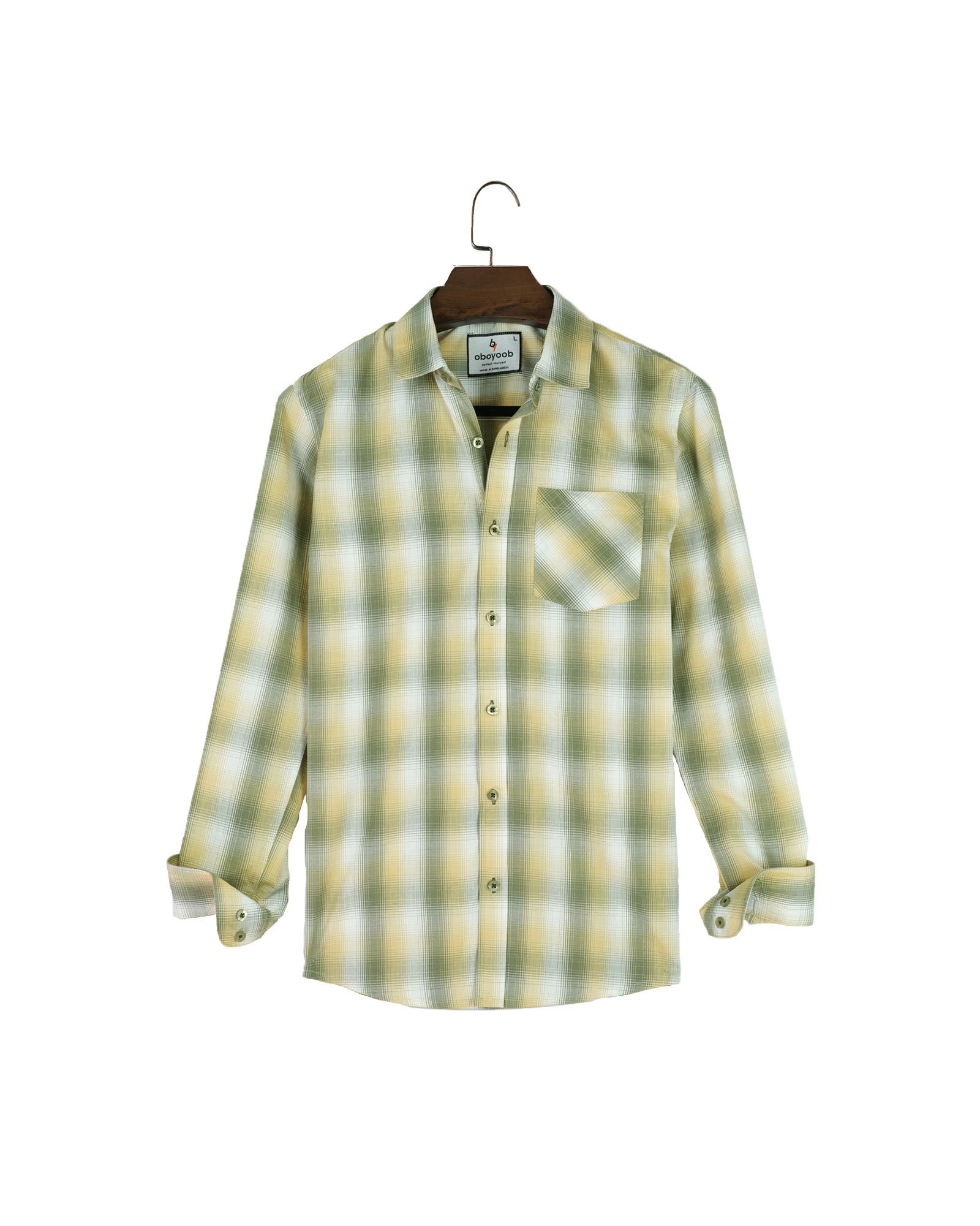 Oboyoob Yellow Green Olive Men’s Check Shirt